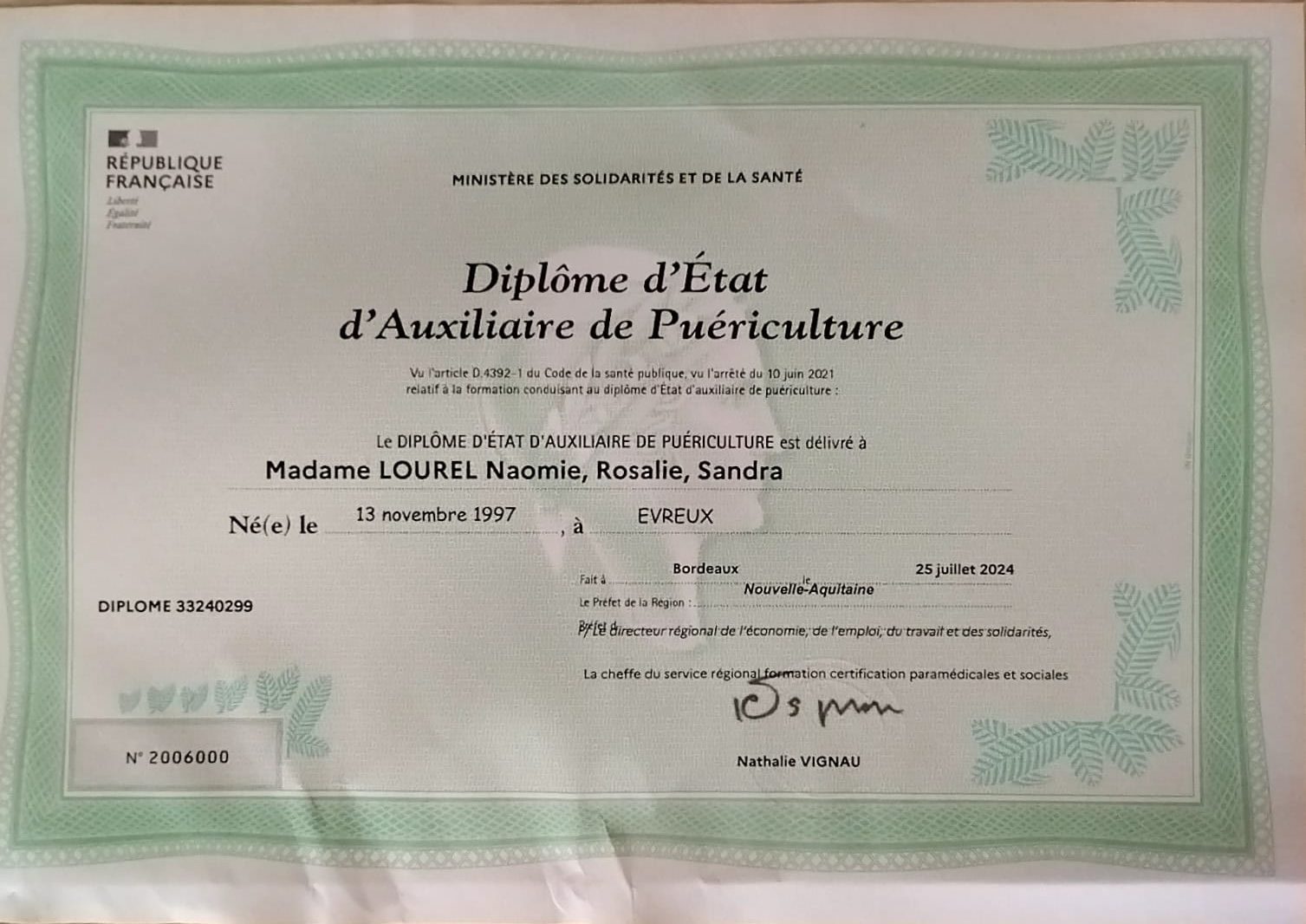 J’ai suivi une formation d’auxiliaire de puériculture pour vous accompagner au mieux.